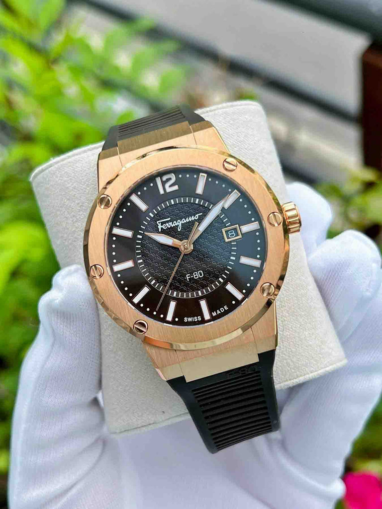 As a leader in luxury fashion, Salvatore Ferragamo presents the F-80 Classic Black Dial Black Rubber Strap Watch for Men - SFHY02522. Featuring a sleek black dial and durable rubber strap, this watch offers both style and substance. With precision timekeeping and a bold design, it's the perfect accessory for the modern man.