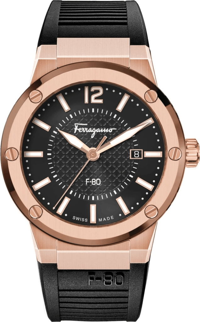 Salvatore Ferragamo F-80 Classic Black Dial Black Rubber Strap Watch for Men - SFHY02522