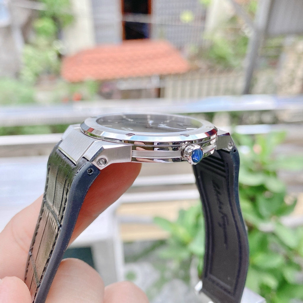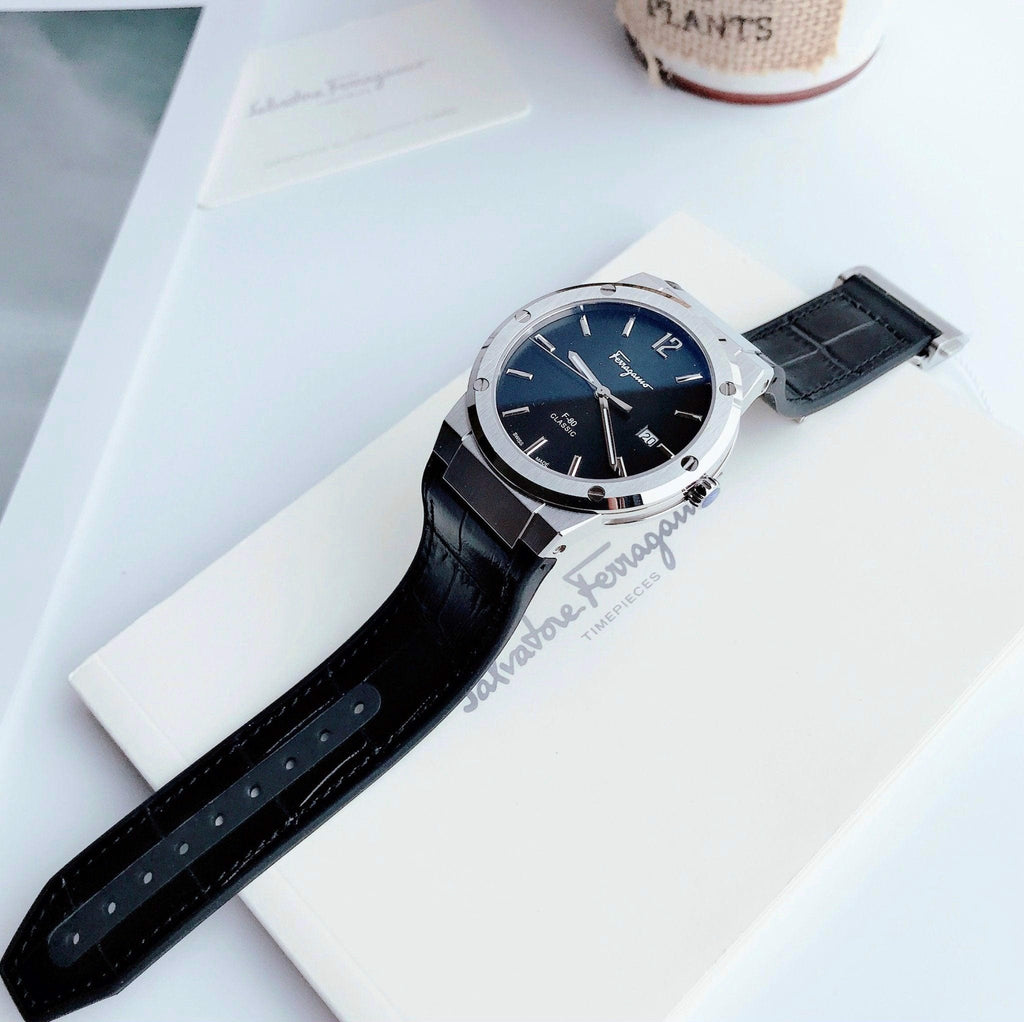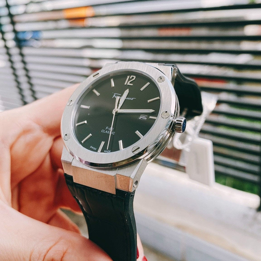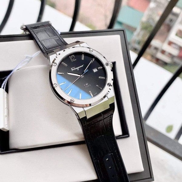 The new F-80 Classic collection comes with a slimmer and smaller case. Its sport-luxury spirit has made it a bestselling Salvatore Ferragamo Timepieces line. Its genuine leather strap flaunts a black hue that accentuates the look of the watch. Furthermore, it is completed with a deployment buckle clasp that ensures a secure fit on the wrist.