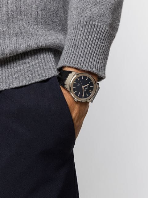 - Black alligator leather strap and inner rubber lining for good sweat resistance, comes with a handy anti-folding buckle