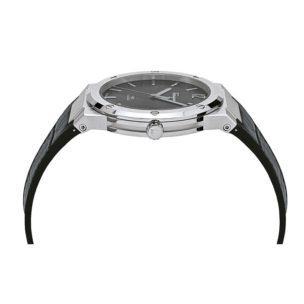 Expertly crafted by Salvatore Ferragamo, the F-80 Classic Watch for Men boasts a sleek black dial and luxurious black leather strap. With timeless style and precision timekeeping, this watch is the perfect accessory for any man. Elevate your look with this high-end timepiece.