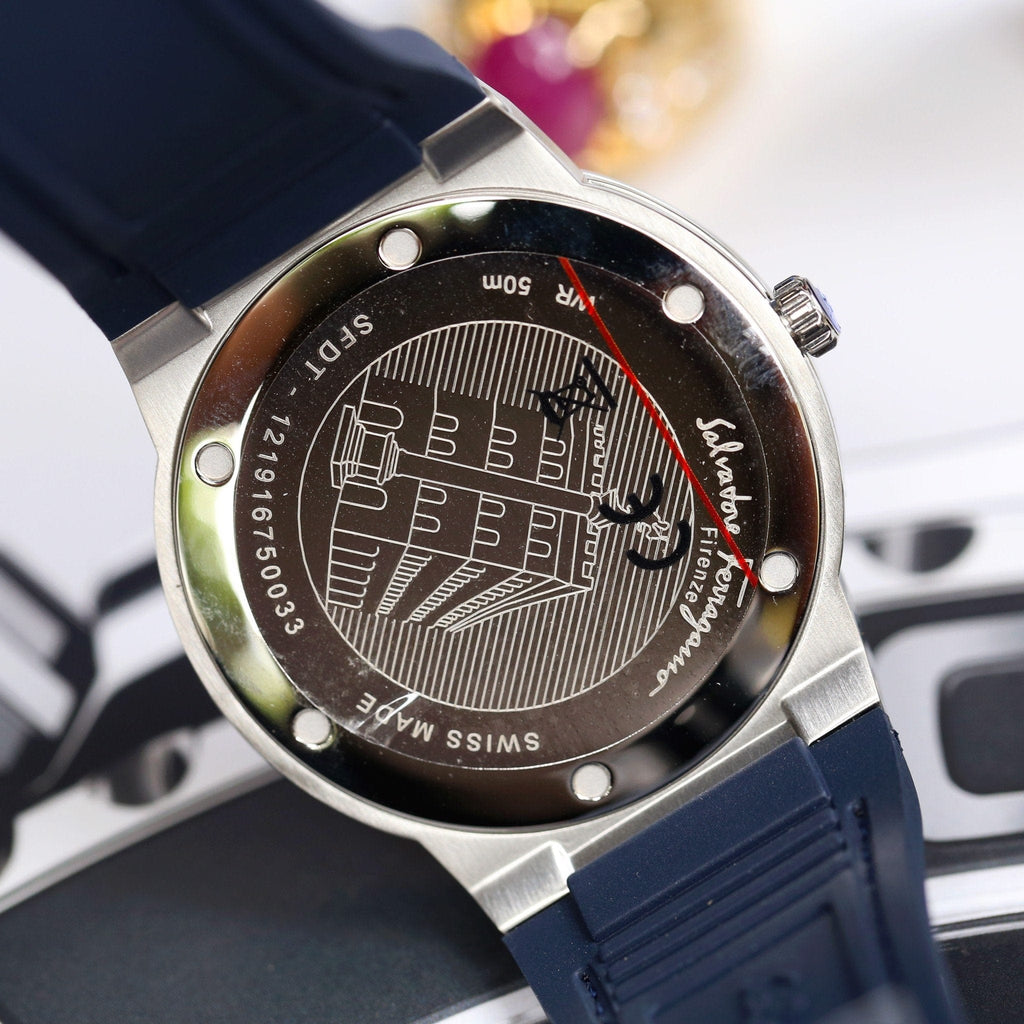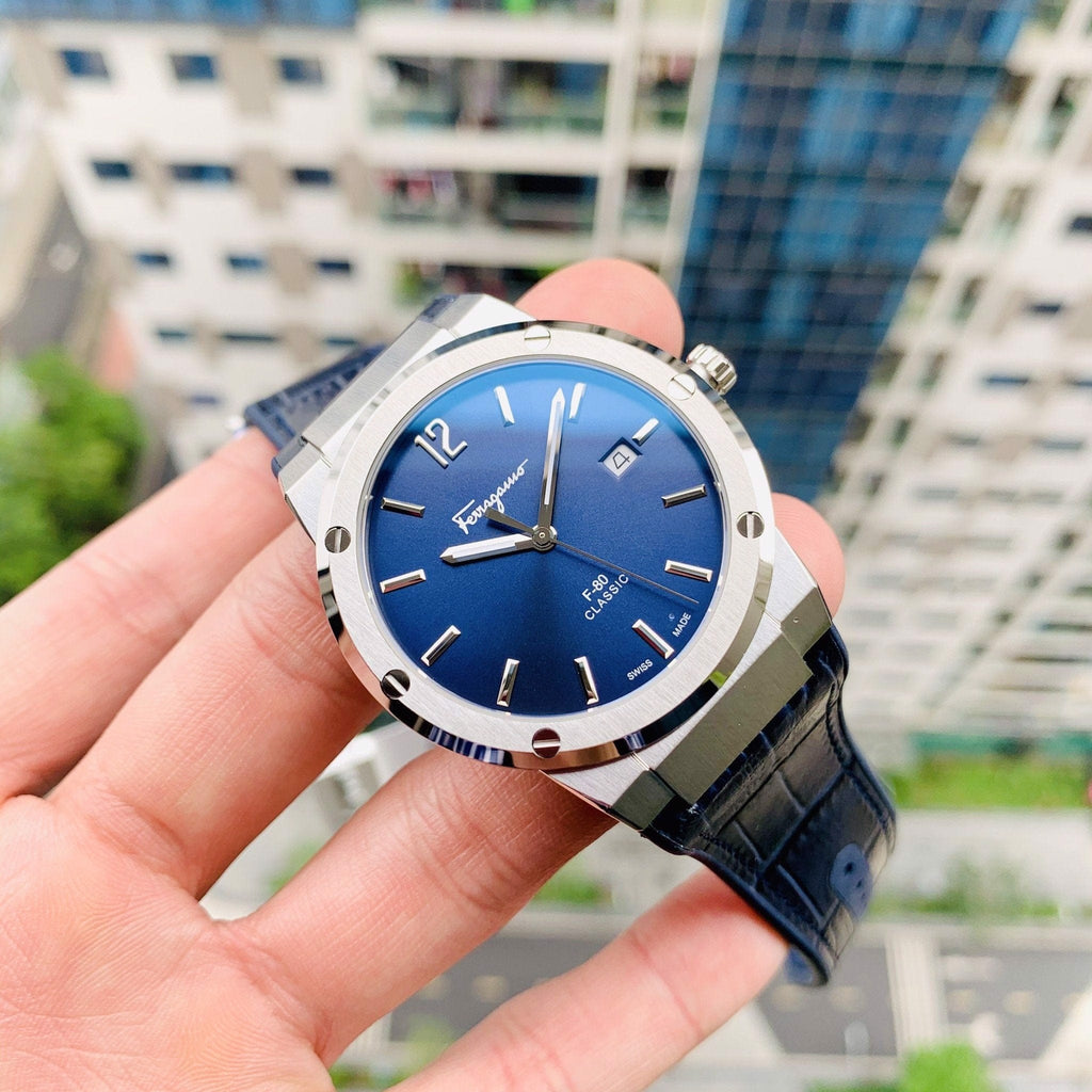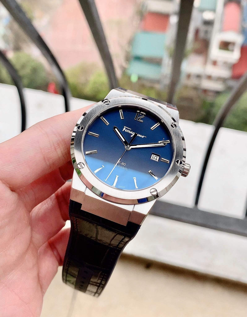 The new F-80 Classic collection comes with a slimmer and smaller case. Its sport-luxury spirit has made it a bestselling Salvatore Ferragamo Timepieces line. Functional on a quartz movement and protected by a sapphire glass, the blue round dial is housed in a stainless steel case. Besides, it is completed with a deployment buckle clasp to ensure a secure fit on the wrist.