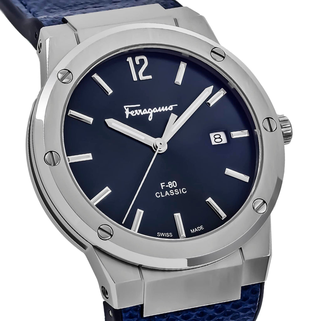 Salvatore Ferragamo F-80 Classic Blue Dial Blue Leather Strap Watch for Men - SFDT00319