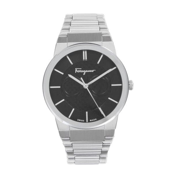 Salvatore Ferragamo Sapphire Bracelet Black Dial Silver Steel Strap Watch For Men - SFHP01124