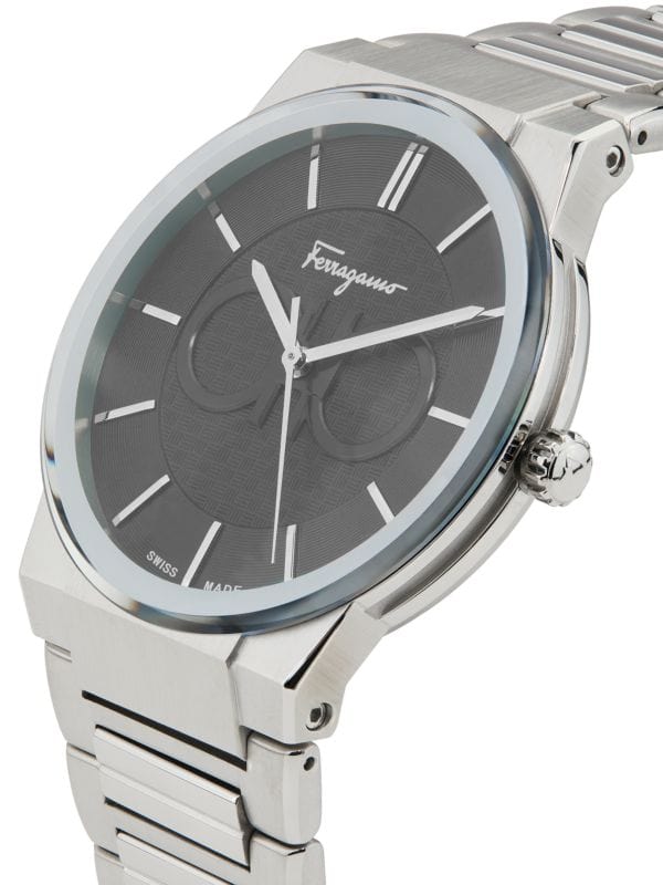 Brand Ferragamo Model Number SFHP01124 Case Size 42mm Case Material Stainless Steel Dial Color Black Crystal Sapphire, scratch-resistant Movement Swiss Quartz Water Resistance 50 meters (5 ATM) Bracelet Material Stainless Steel Clasp Type Deployment Clasp Functions Hours, Minutes, Seconds, Date