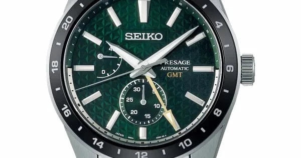 This watch, in the popular Presage Sharp Edged series, is designed for practical international timekeeping. The GMT hand and high visibility hour markers, along with clear 24-hour bezel, mean multiple time zone calculations can be made at a glance, quickly and easily.The dials on Presage Sharp Edged timepieces feature a traditional Japanese pattern designed to bring growth and success. This angular ancient hemp print has been seen in Japanese artisan objects since the Heian period (794-1185).