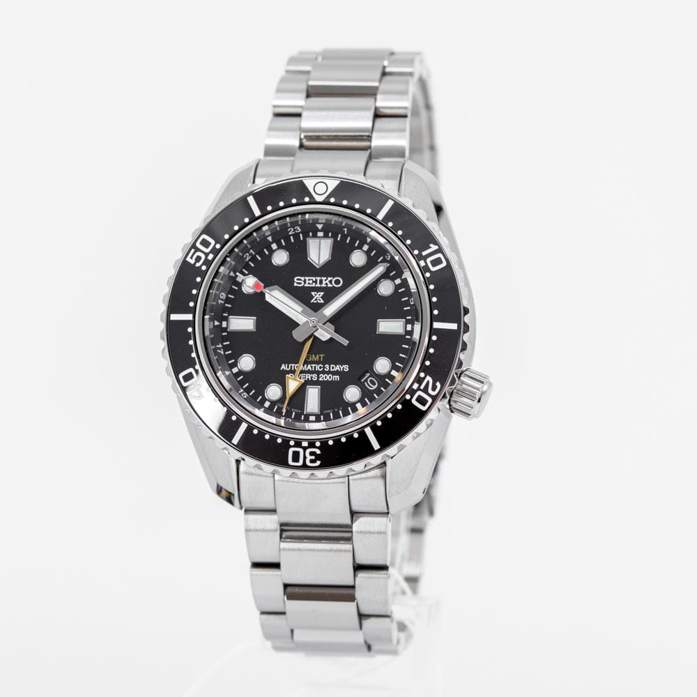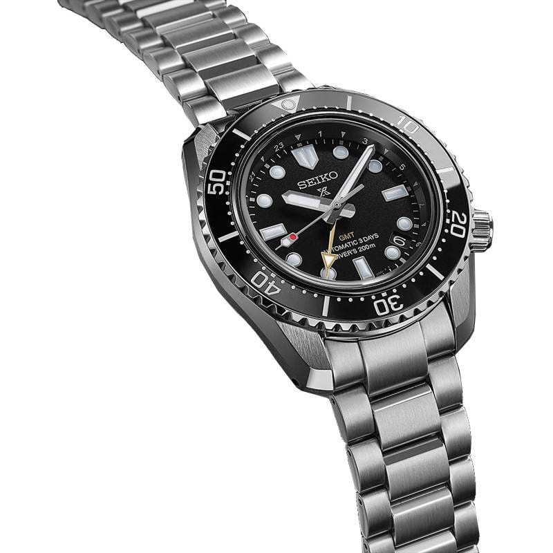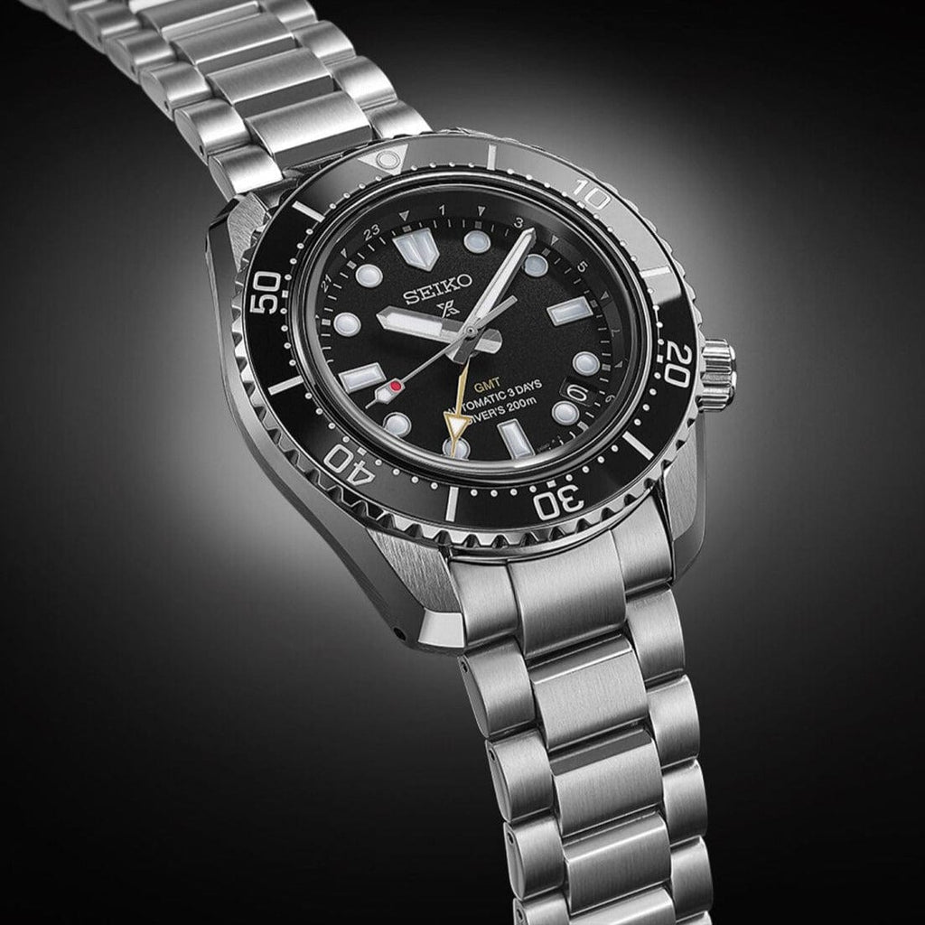 This modern watch is powered by the new in-house Calibre 6R54 and is the first of Seiko’s diving watches with mechanical GMT functionality. Built for wearability: the bracelet fits comfortably due to its low centre of gravity and short-pitch – and durability: with a three-day power reserve and high-quality scratch resistant Japanese ceramic Diving scale, its water resistance is up to 200m.