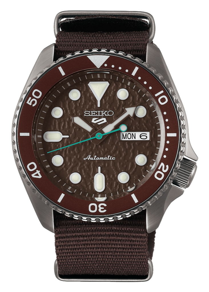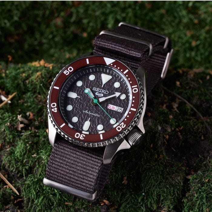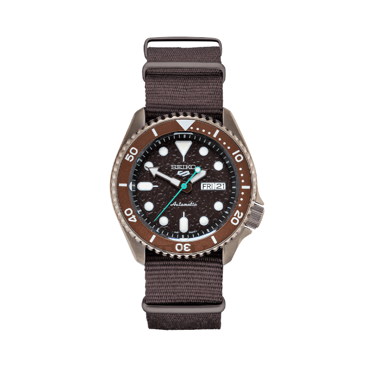 Seiko 5 Sport Automatic Brown Dial Brown Nylon Strap Watch For Men - SRPD85K1