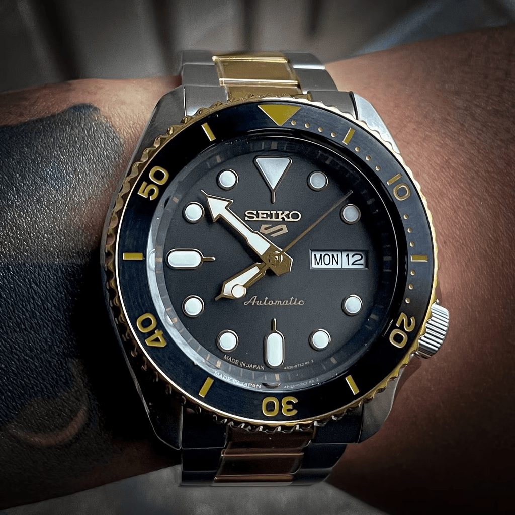 Seiko 5 Sports Automatic Special Creation Black Dial Two Tone Steel Strap Watch For Men - SRPK22