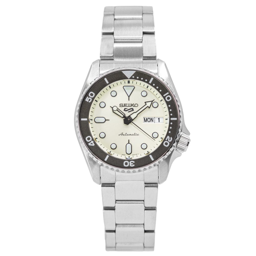 Seiko 5 Sports SKX Automatic Cream Dial Silver Steel Strap Watch For Men - SRPK31K1