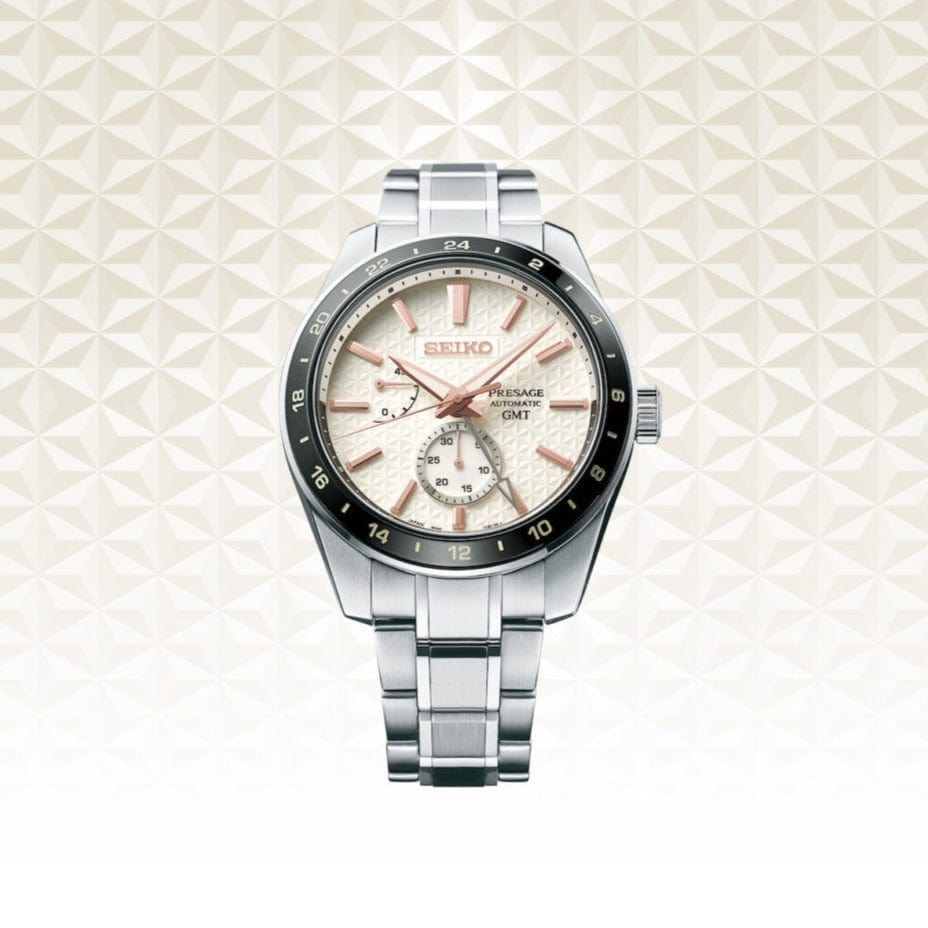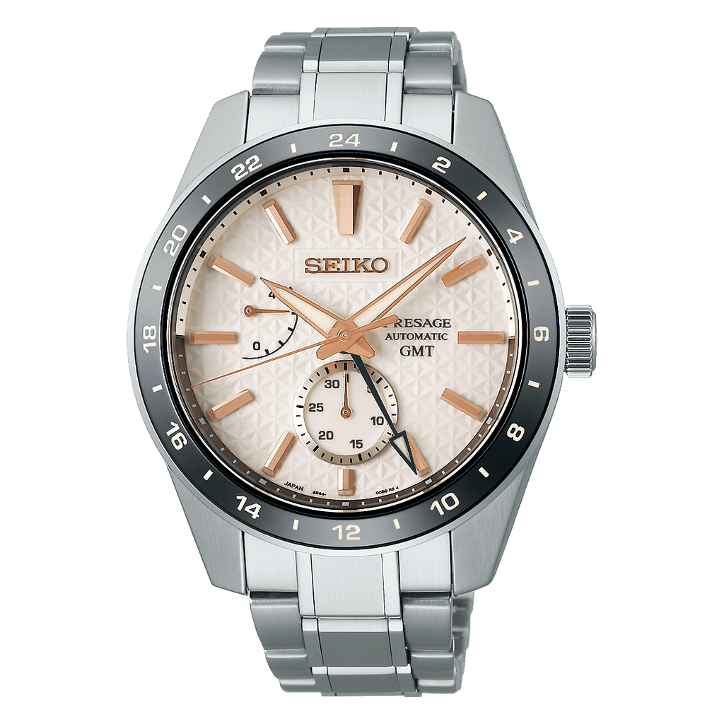 Seiko Presage Sharp Edged Series Automatic GMT Champagne Dial Silver Steel Strap Watch For Men - SPB273J1
