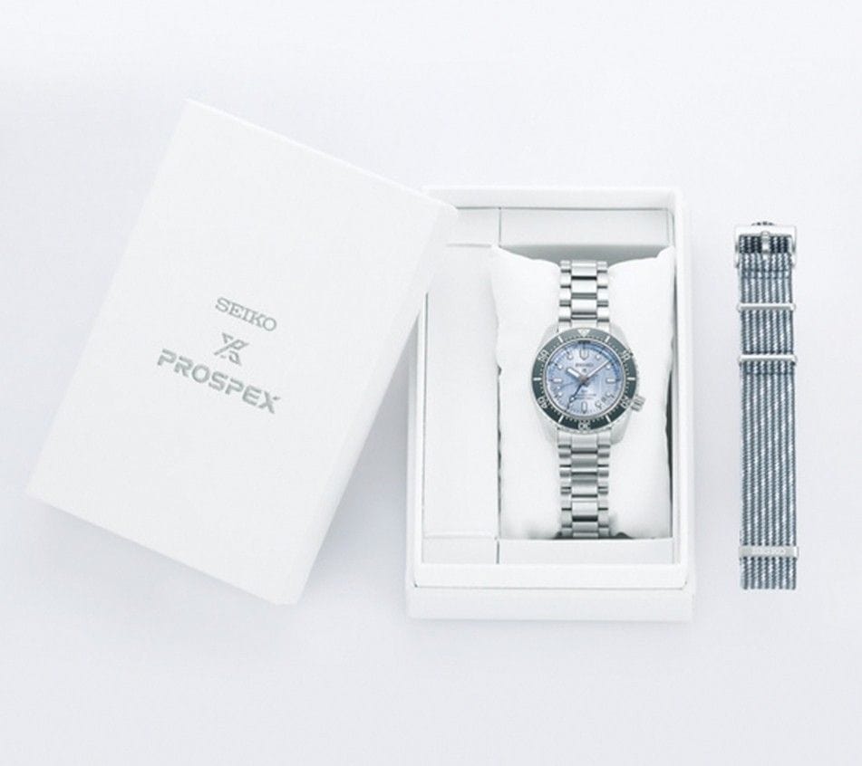 The watch comes with both a bracelet and fabric NATO strap option - with the fabric strap being made 100% of recycled bottles.Prospex is a combination of the words Professional and Specifications. Seiko Prospex timepieces are designed to be practical, reliable and durable; to meet the high standards required in extreme environments for sports lovers and adventure seekers alike."