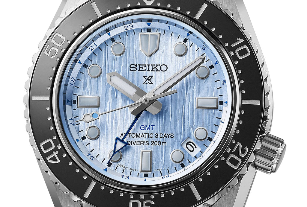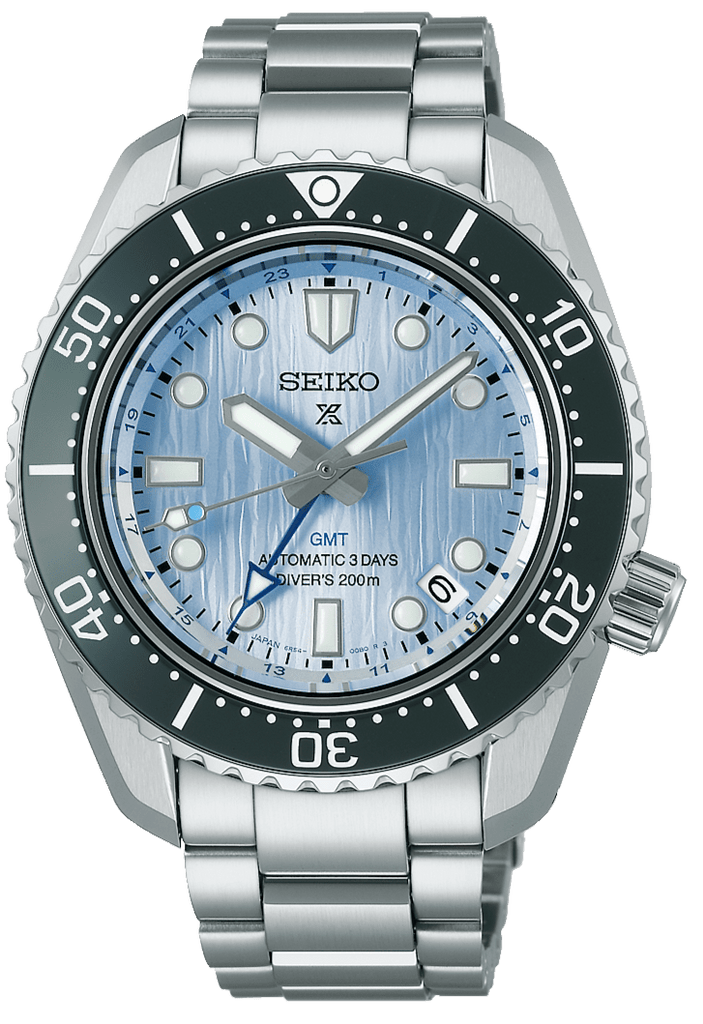 Prospex "Glacier blue" GMT Limited EditionThis limited-edition, modern re-interpretation of the 1968 Diver's watch is inspired by both Japans first hi-beat one-piece Divers watch created by Seiko as well as commemorating the 110th anniversary of Japan's first wristwatch, as created by Seiko. The success of the 1968 Diver's model laid the foundation for Seiko Diver's watch development which for sixty years has innovated in wearable, precise watches for professional and recreational divers.