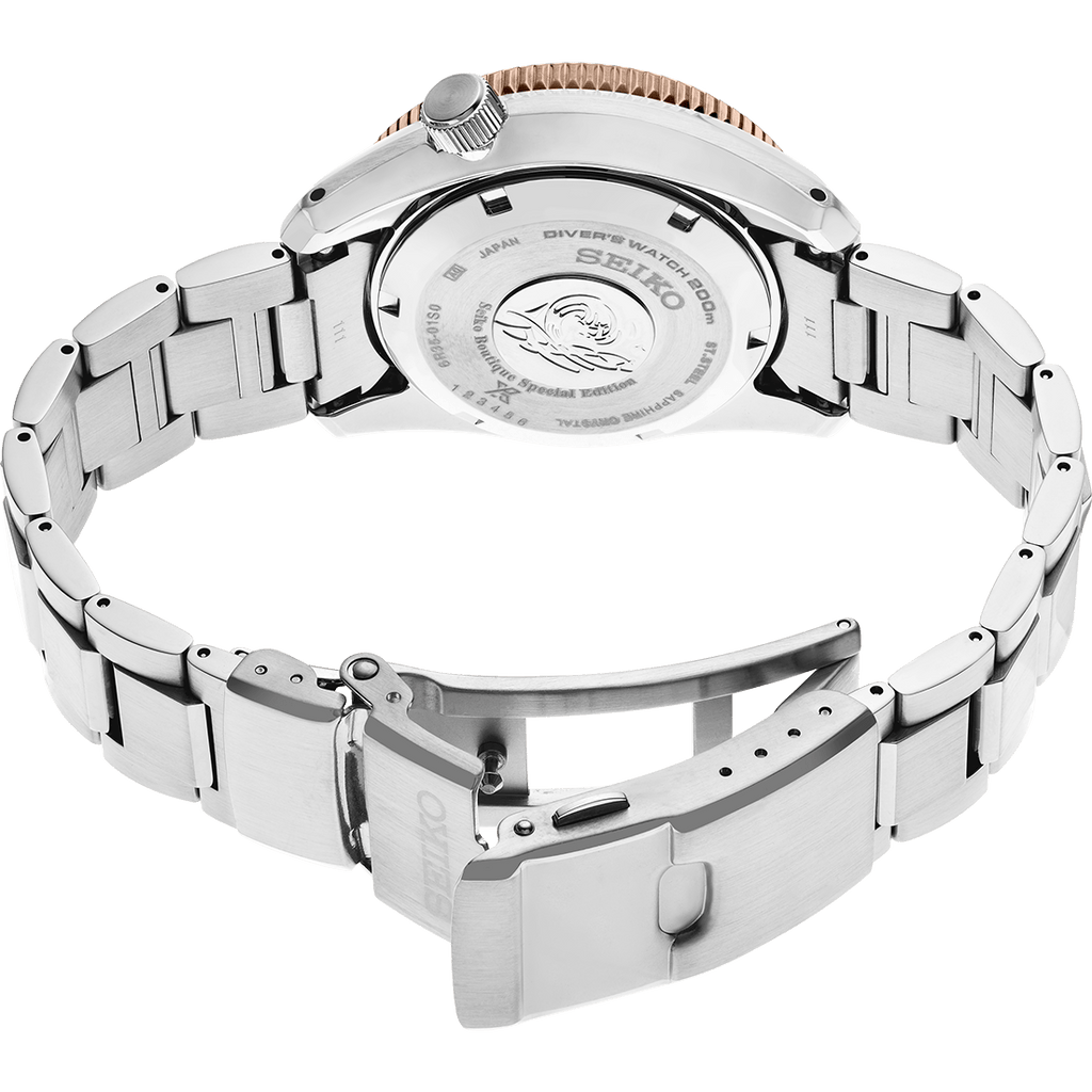 Its 10-beat high precision automatic calibre, one-piece structure, mono-directional rotating bezel and screw-down protection crown influenced Seiko diver's watch development which has, for nearly 60 years, pushed back the frontiers of precision, durability and ease of use in watches for professional and recreational divers.