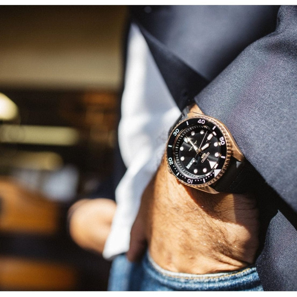 Expertly crafted for the modern man, the Seiko 5 Sport SKX Automatic Watch boasts a sleek black dial and comfortable black Silicone strap. The self-winding movement and sturdy construction provide both style and functionality, making it the perfect accessory for any occasion.