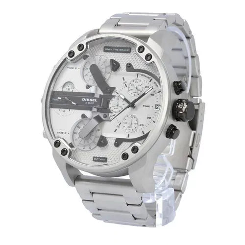 Diesel Mr. Daddy Chronograph Silver Dial Silver Steel Strap Watch For Men - DZ7421