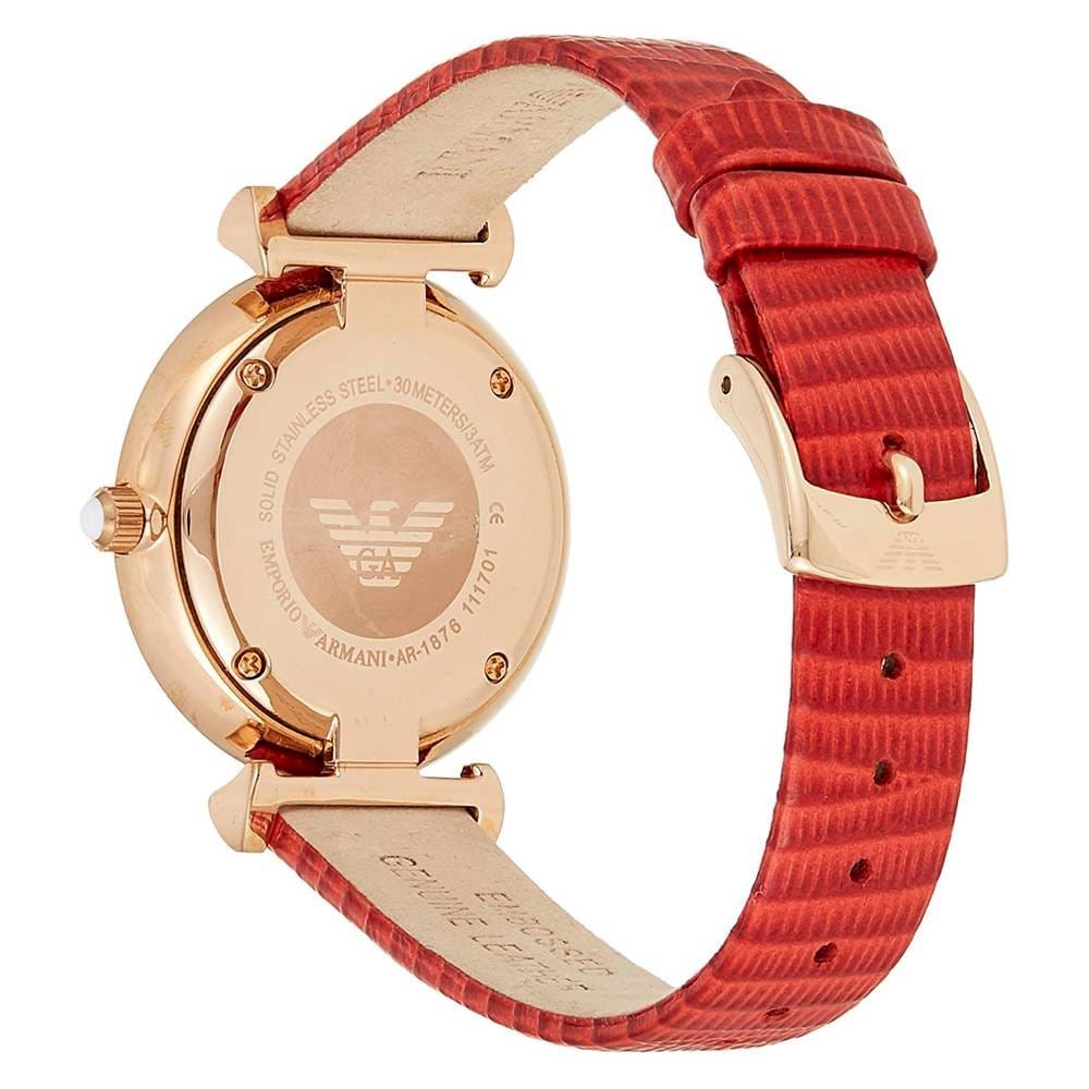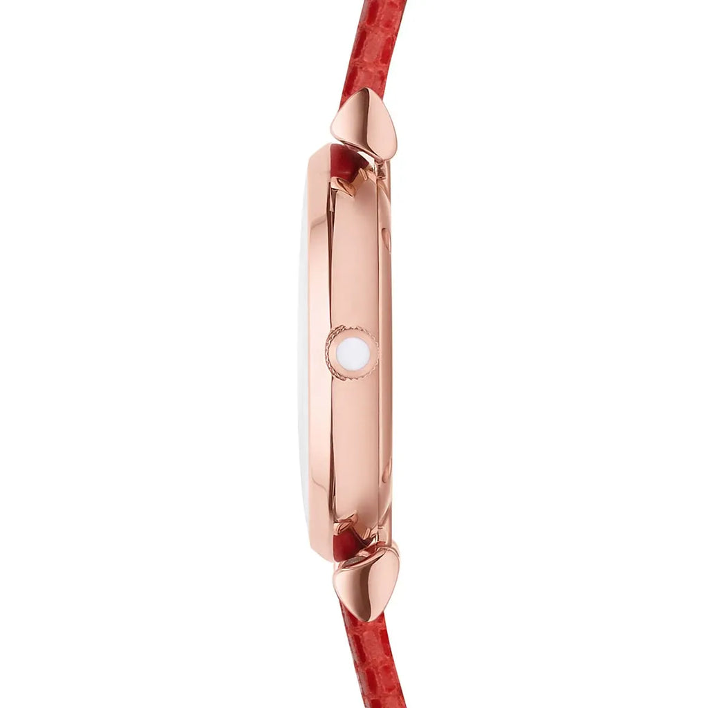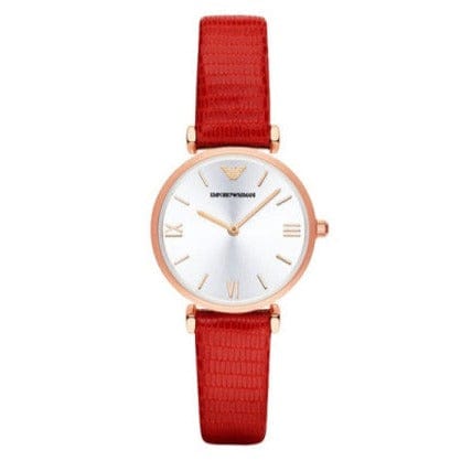 Emporio Armani Gianni T Bar Silver Dial Red Leather Strap Watch For Women - AR1876