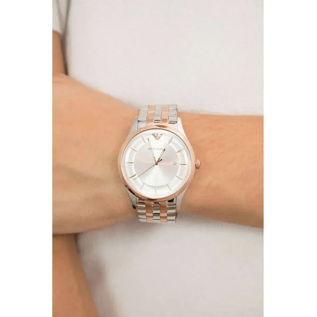 Emporio Armani Lambda Analog Silver Dial Two Tone Steel Strap Watch For Men - AR11044