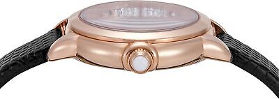 • Emporio Armani's 32mm watch features a silver glossy sunray dial, three-hand movement and black lizard patterned leather strap.