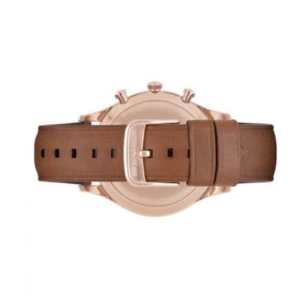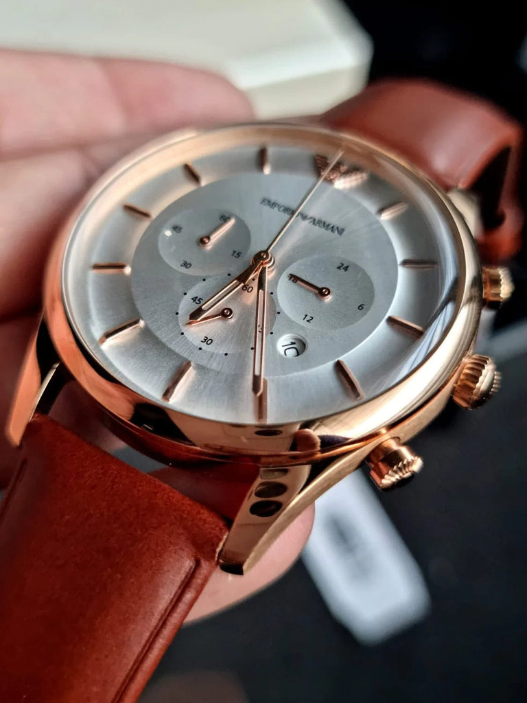 Emporio Armani Quartz Silver Dial Brown Leather Strap Watch For Men - AR11043