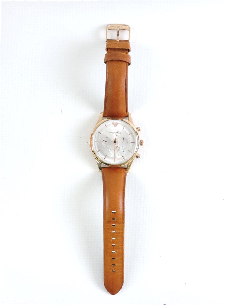 Emporio Armani Men’s Quartz Leather Strap Silver Dial 43mm Watch AR11043