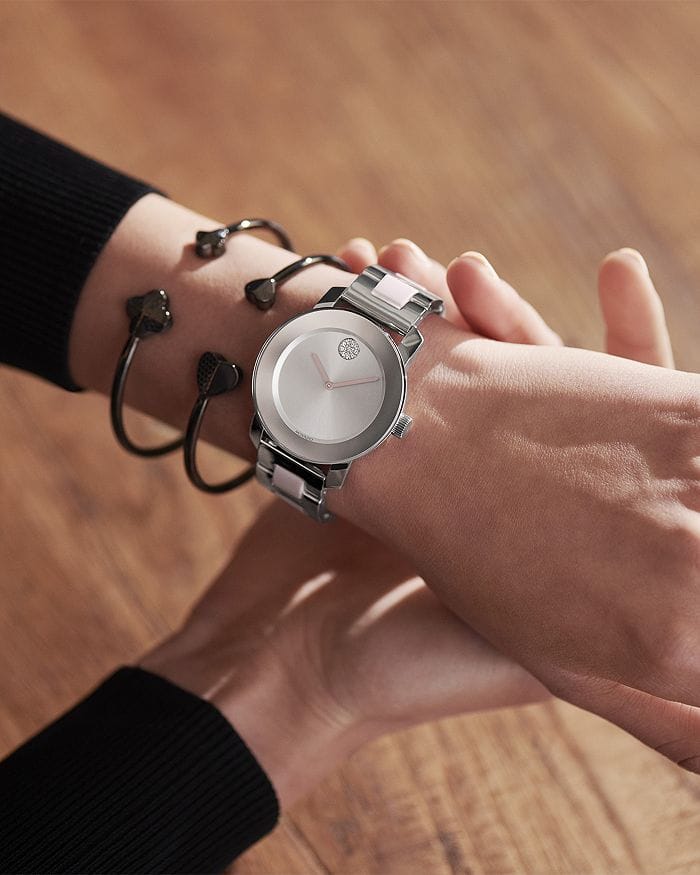 Movado Bold Ceramic Silver Dial Silver Steel Strap Watch for Women - 3600638