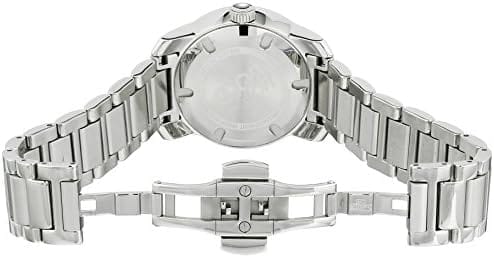 Stainless steel case with a stainless steel bracelet. Fixed stainless steel bezel set with diamonds. Silver dial with silver-tone hands. Dial Type: Analog. Quartz movement. Scratch resistant K1 mineral crystal. Pull / push crown. Solid case back. Round case shape. Case size: 36 mm. Case thickness: 7 mm. Band width: 12 mm. Band length: 7 inches. Deployment clasp with a push button release. Water resistant at 30 meters / 100 feet.