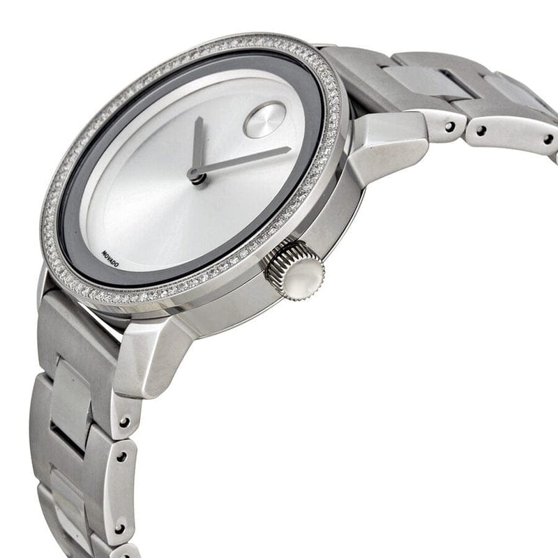 Movado Bold Diamonds Silver Dial Silver Steel Strap Watch for Women - 3600149