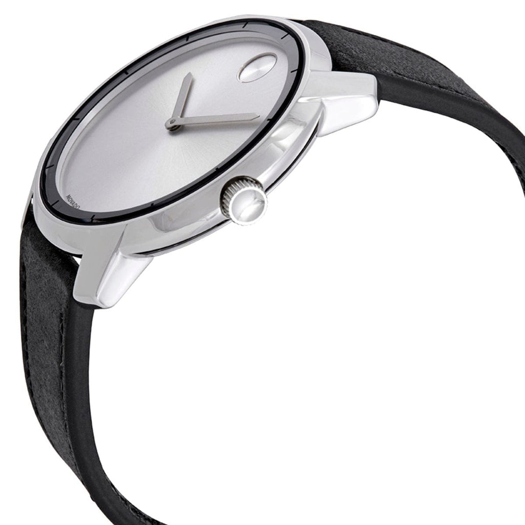 Movado Bold Silver Dial Black Leather Strap Watch For Men - 3600468