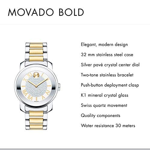 Movado Bold Silver Dial Two Tone Steel Strap Watch For Women - 3600256