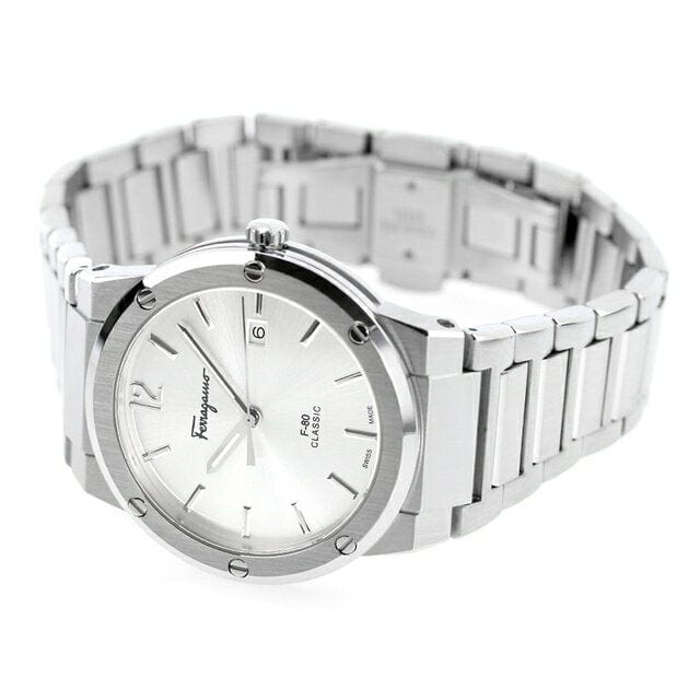 Salvatore Ferragamo F-80 Classic Silver Dial Silver Steel Strap Watch for Men - SFDT02223