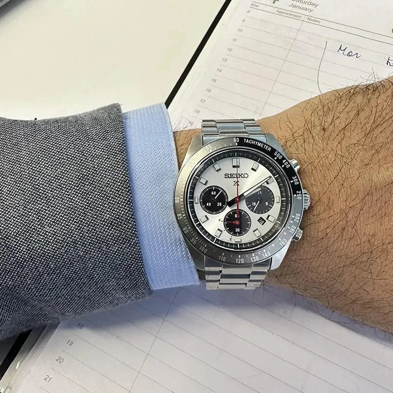 This solar-powered chronograph timepiece is from the Prospex Speedtimer watch collection which represents Seiko’s professional timekeeping heritage.
