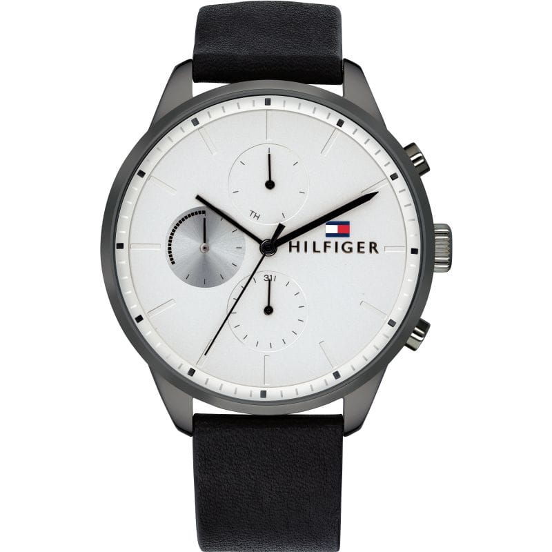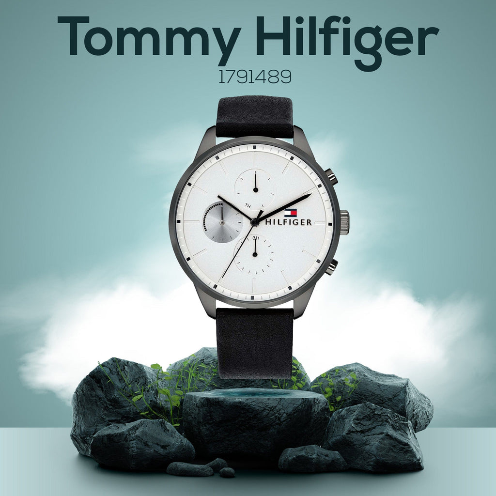 Tommy Hilfiger Lexor Silver Dial Black Leather Strap Watch For Men - 1791489