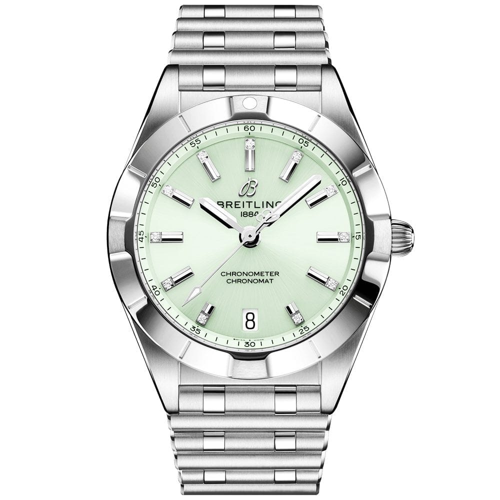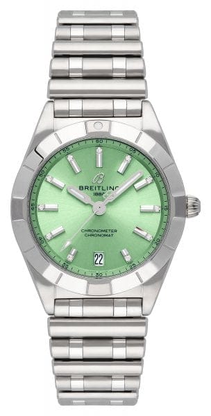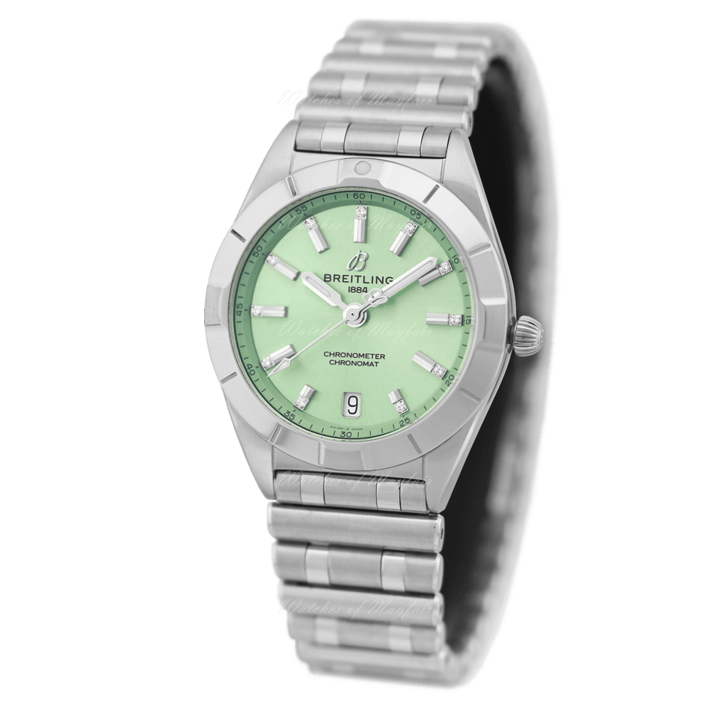 Breitling Chronomat 32 Diamonds Green Dial Silver Steel Strap Watch for Women - A77310101L1A1
