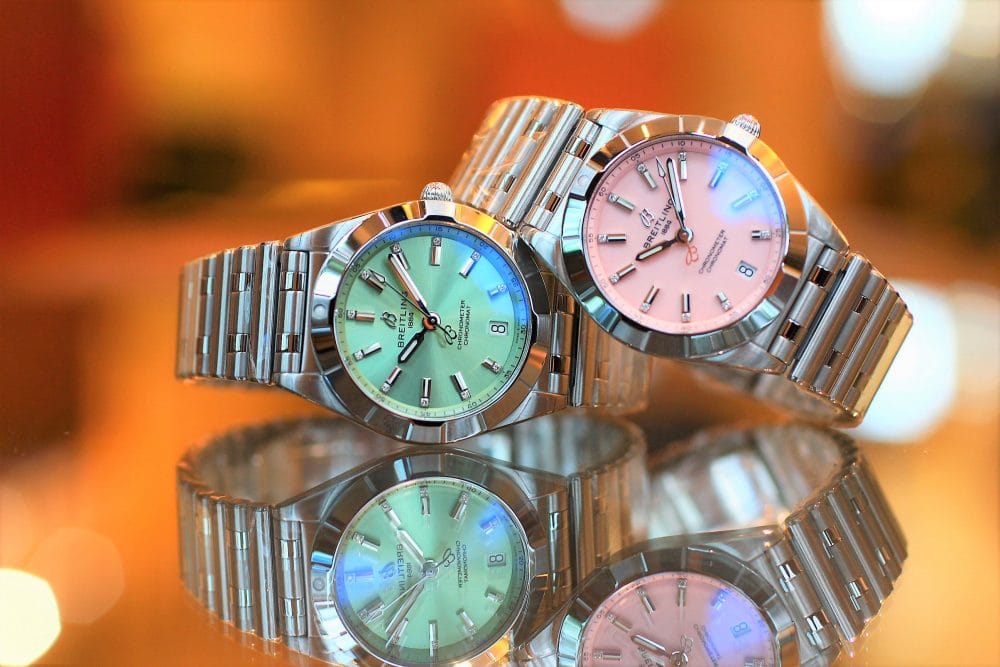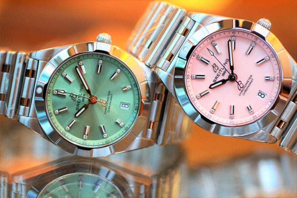 Stylish yet elegant, the modern-retro inspired Chronomat 32 is the versatile sporty and chic watch for any occasion. It is available in an array of metal cases, from cool stainless steel, to goes-with-everything bicolor, or even luxurious 18k red gold. Women craving extra sparkle will also be able to opt for diamond-set bezels, indices, and colorful dials. Featuring Breitling’s iconic and comfortable “Rouleaux” bracelet with a butterfly clasp, the Chronomat 32 is powered by the Breitling Caliber 77, a COSC-certified SuperQuartz™ chronometer.
