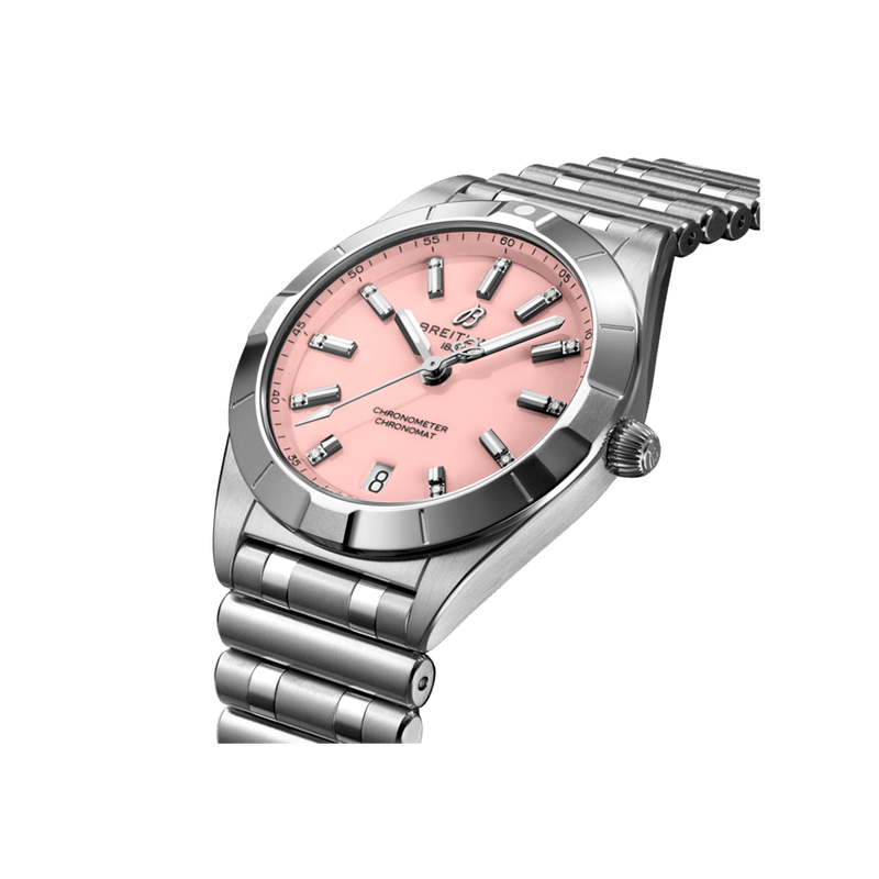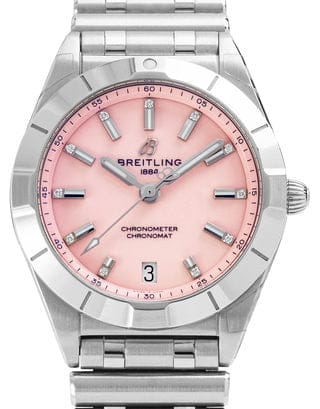 Breitling Chronomat 32 Diamonds Pink Dial Silver Steel Strap Watch for Women - A77310101K1A1