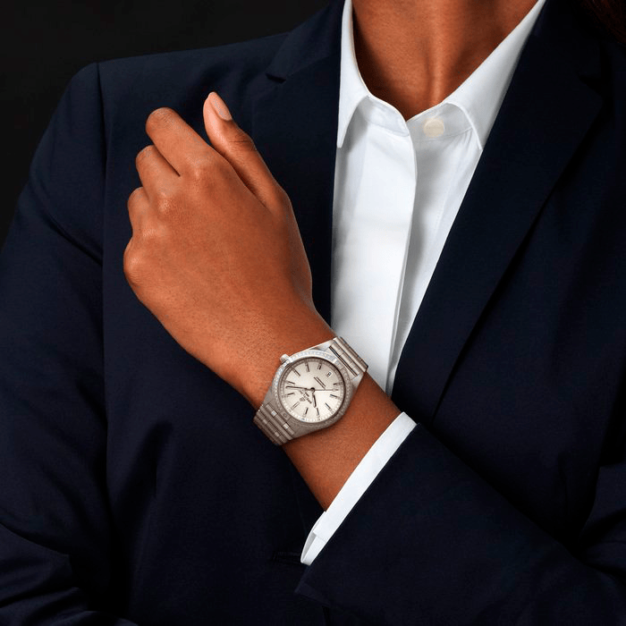 - Brushed & polished stainless steel case & bracelet.