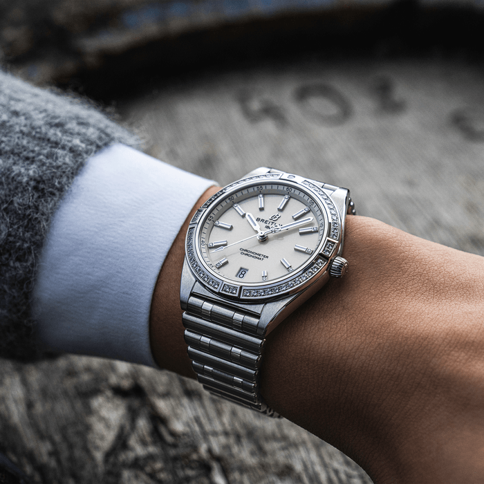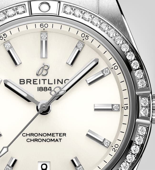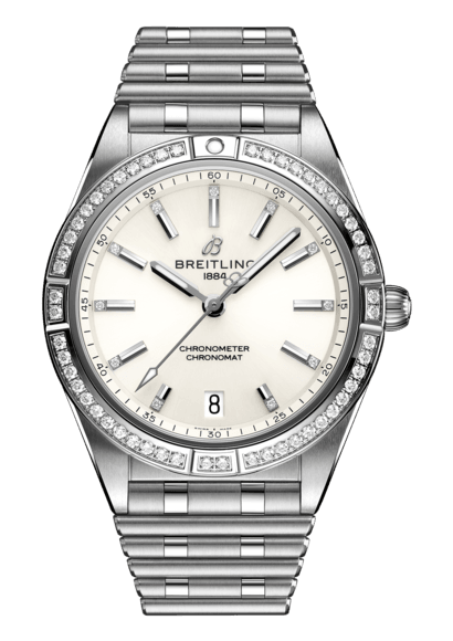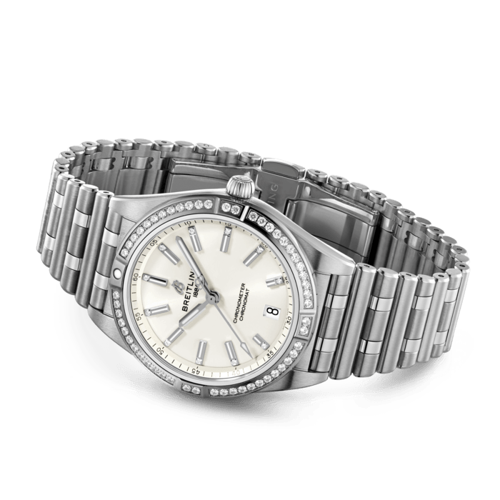 Stylish yet elegant, the modern-retro inspired Chronomat Automatic 36 is the versatile sporty and chic watch for any occasion. It is available in an array of metal cases, from cool stainless steel, to goes-with-everything bicolor, or even luxurious 18k red gold. Women craving extra sparkle will also be able to opt for diamond-set bezels, indices, and colorful dials. Featuring Breitling’s iconic and comfortable “Rouleaux” bracelet with a butterfly clasp, the Chronomat Automatic 36 is powered by the Breitling Caliber 10, a COSC-certified chronometer.