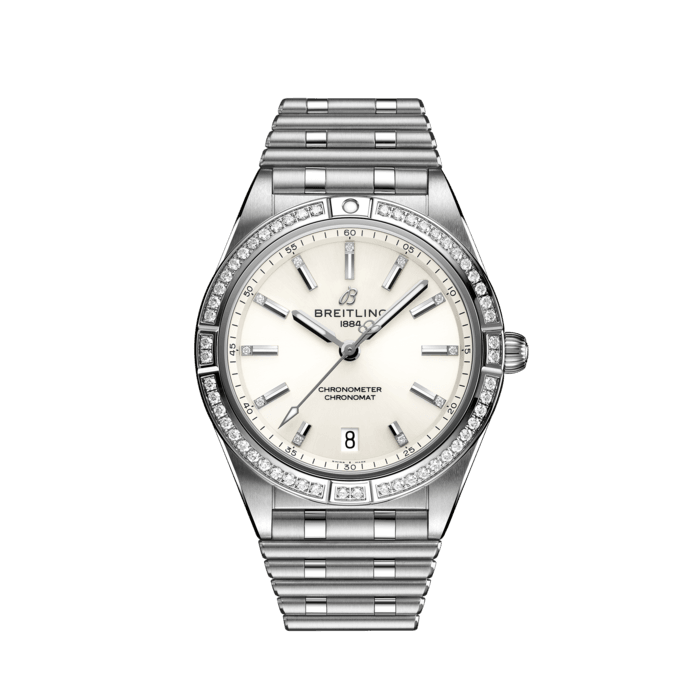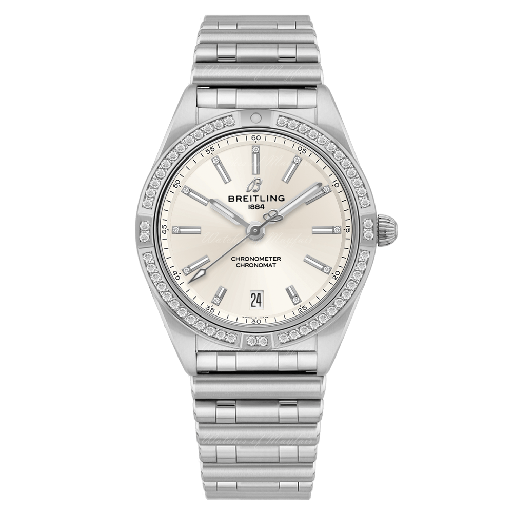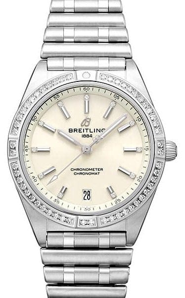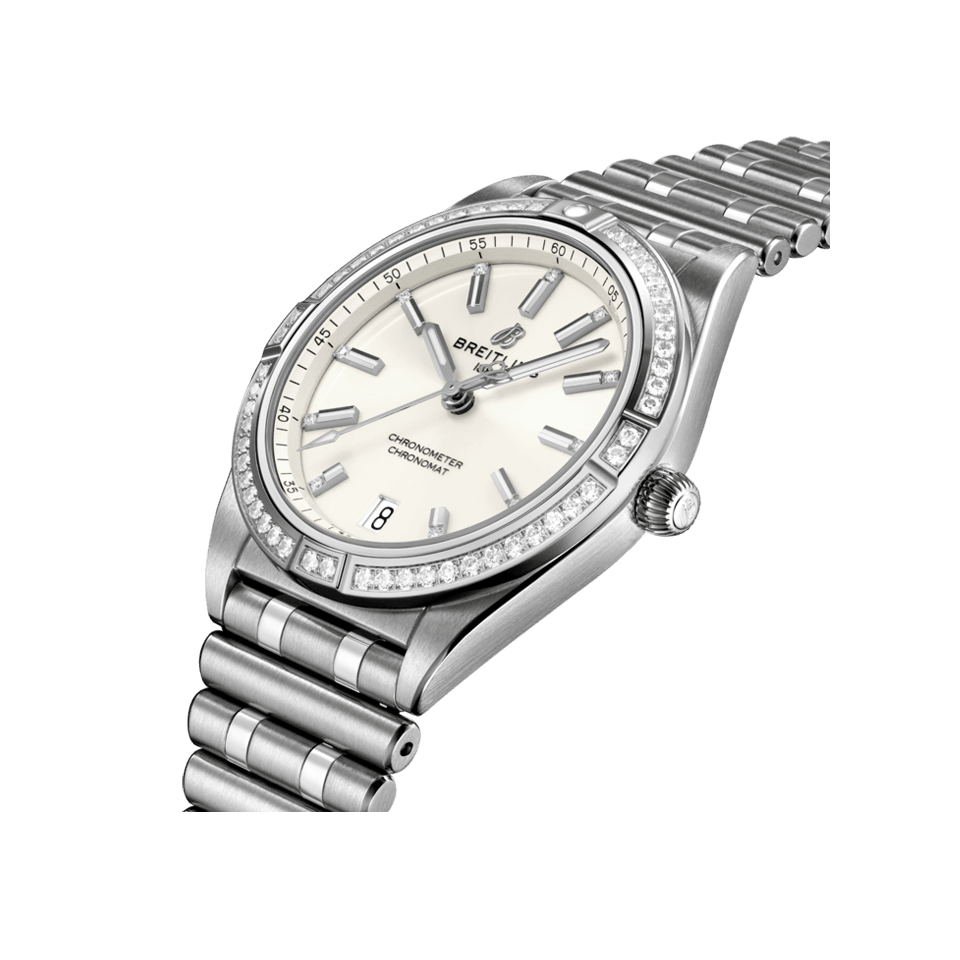 Breitling Chronomat Automatic 36 Diamonds White Dial Silver Steel Strap Watch for Women - A10380591A1A1