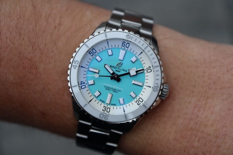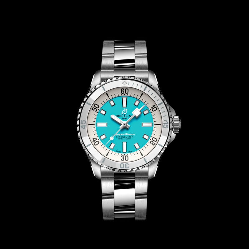 The new Superocean retraces the Slow Motion's celebrated design codes, while adding modern features, like a ceramic-inlayed bezel and brightly colored dials. Broad hands and indexes in luminescent Super-LumiNova® allow for easy readability underwater. The watch is water resistant to 300 m (1000 ft), as well as being shock-, sand- and saltwater-resistant. The bronze version uses a special alloy that has excellent resistance to corrosion, yet will still develop a subtle patina over time that makes the watch even more unique. The two strap options (rubber and metal bracelet) have a folding clasp that allows for micro-adjustments of up to 15 mm for easy wear over rashies and wetsuits. Its scratch-proof ceramic inlayed bezel will never wear or fade. For safety, the bezel is uni-directional on most sizes and bi-directional with a patented lock on the 46 mm. Best of all, this is no longer strictly a dive watch—surf with it, swim with it, hit the beach bar with it, then wear it out to dinner. The Superocean perfectly balances the nostalgia of its heritage with a fresh new look.