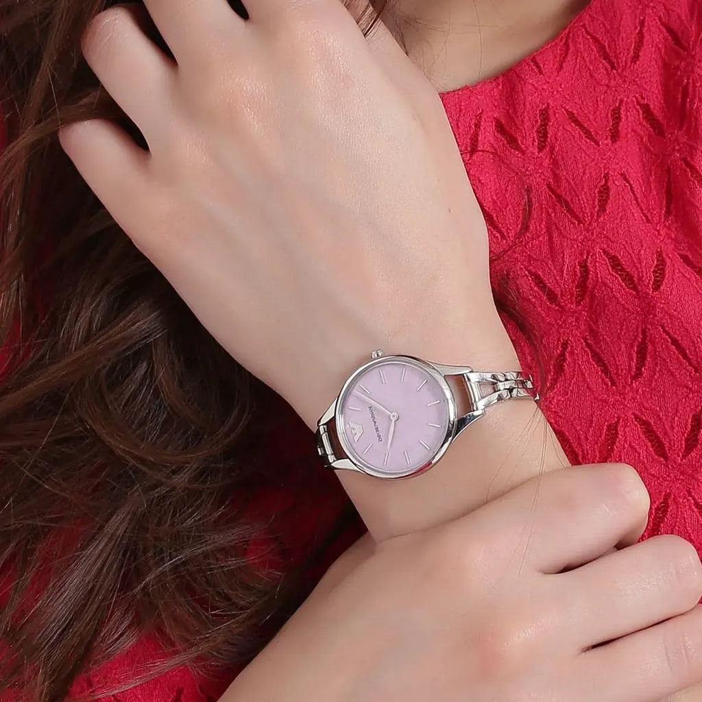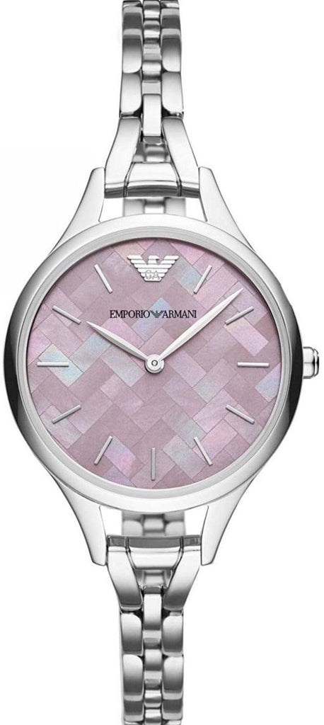 Emporio Armani Aurora Mother Of Pearl Purple Dial Silver Steel Strap Watch For Women - AR11122