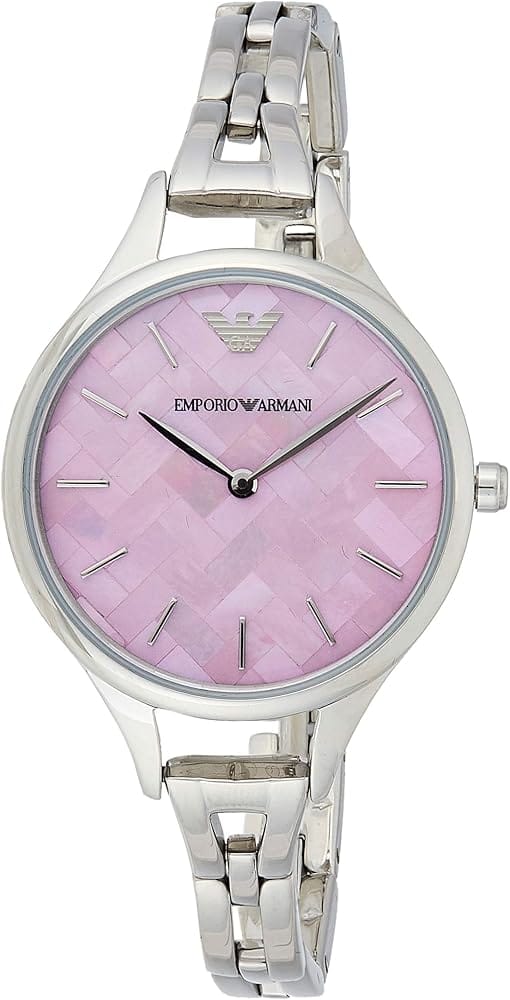 This analogue watch from Emporio Armani has a stainless steel strap in silver, complemented by a mother of pearl dial. Please note, the dial for the Emporio Armani AR11122 ladies' watch has 32 mm in diameter.