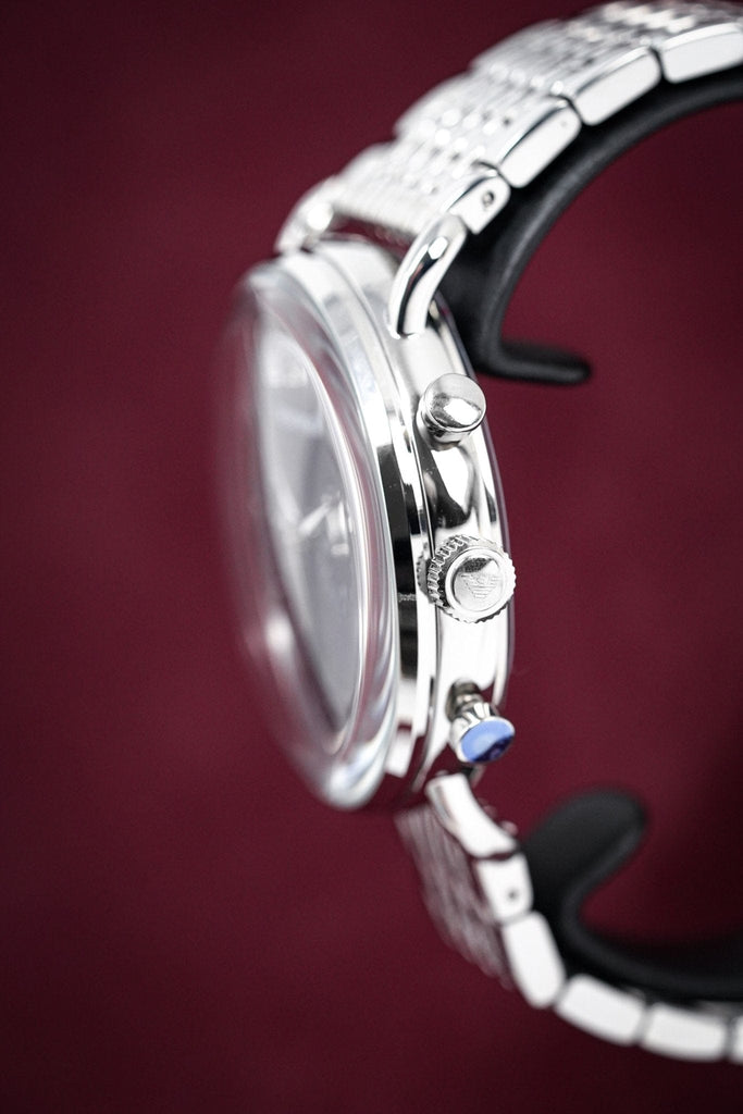 Emporio Armani Aviator Chronograph Blue Dial Silver Steel Strap Watch For Men - AR11238
