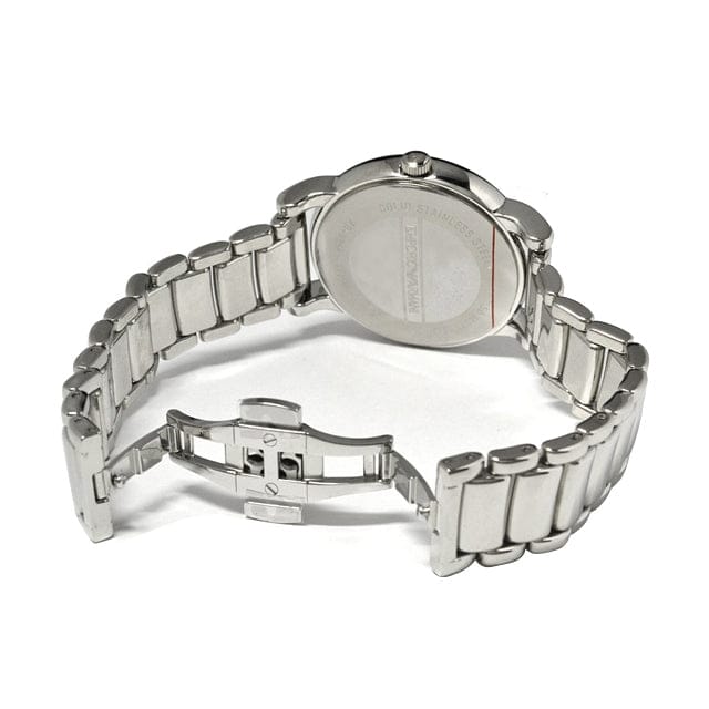 It is a refined men's watch with the Japanese Myota quartz movement. The case is in polished silver stainless steel 41 mm in diameter with a thickness of 11 mm, the caseback is in polished silver stainless steel with a screw closure. The white dial with stick indexes and silver steel hands, the date is positioned at 3 o'clock.