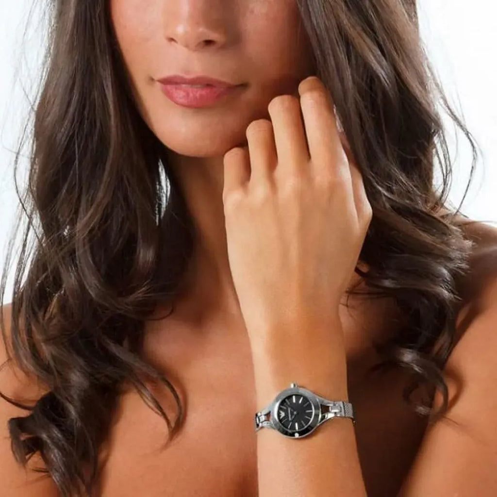 Emporio Armani Classic Quartz Black Dial Silver Steel Strap Watch For Women - AR7328