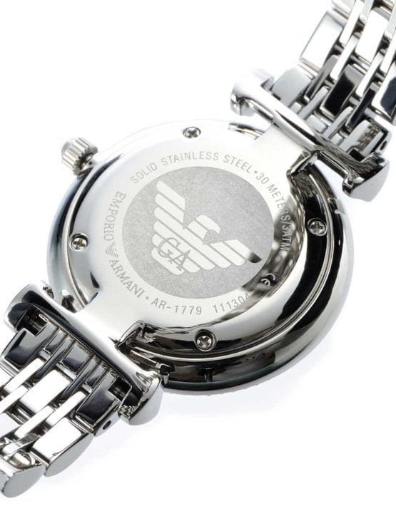 Emporio Armani Classic Gianni T Bar Crystals Pink Dial Silver Steel Strap Watch For Women - AR1781