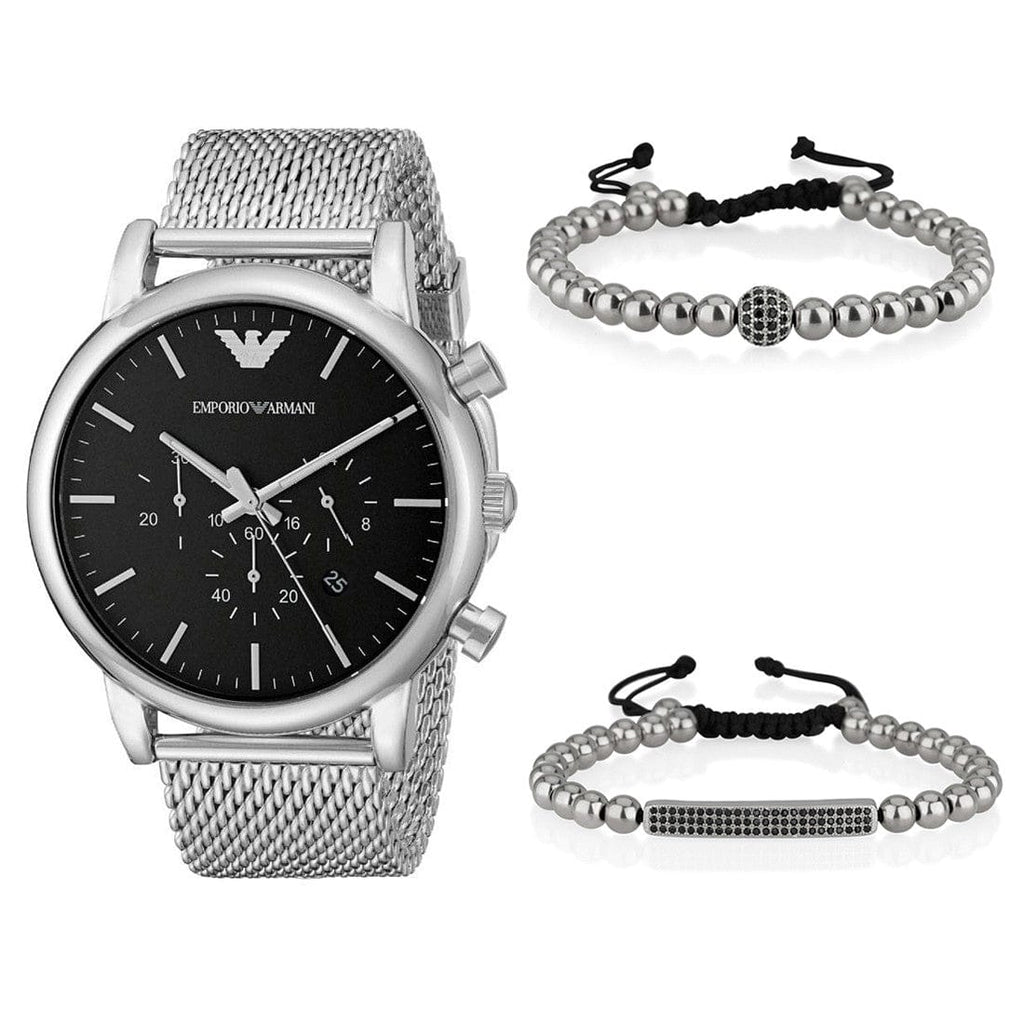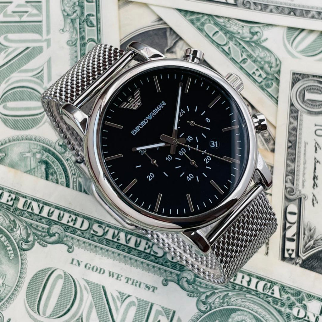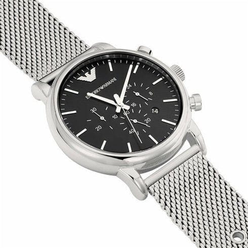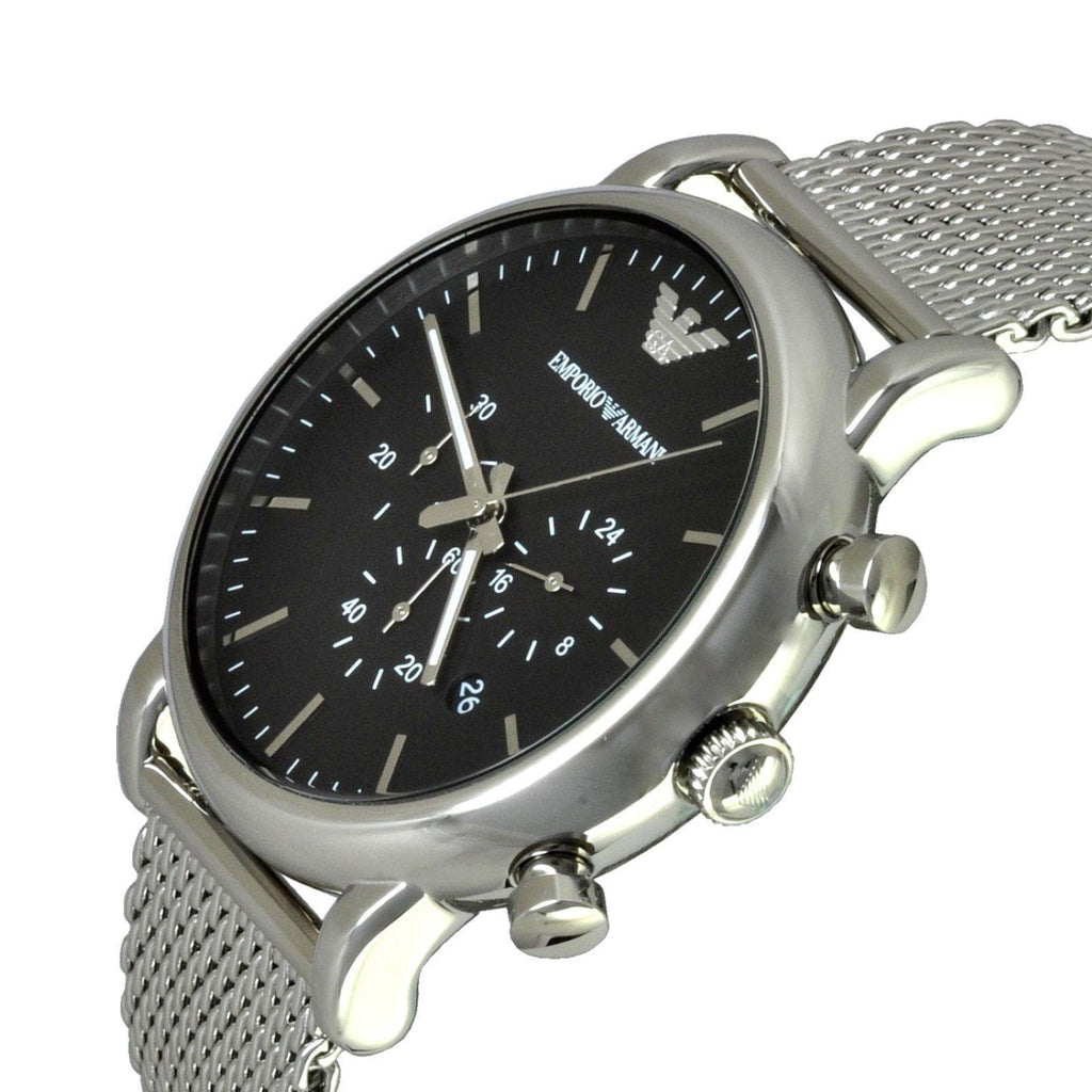 Emporio Armani Luigi Black Dial Silver Mesh Bracelet Watch For Men - AR8032