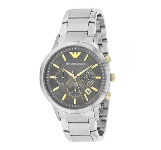 This Emporio Armani Men’s Watch AR11047 has silver stainless steel links black dial and gold hands. Stylish and in fashion for any man that wants this watch to add to their collection.
