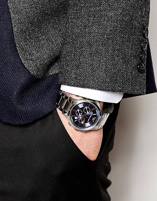 Emporio Armani Renato Chronograph Blue Dial Silver Steel Strap Watch For Men - AR2448