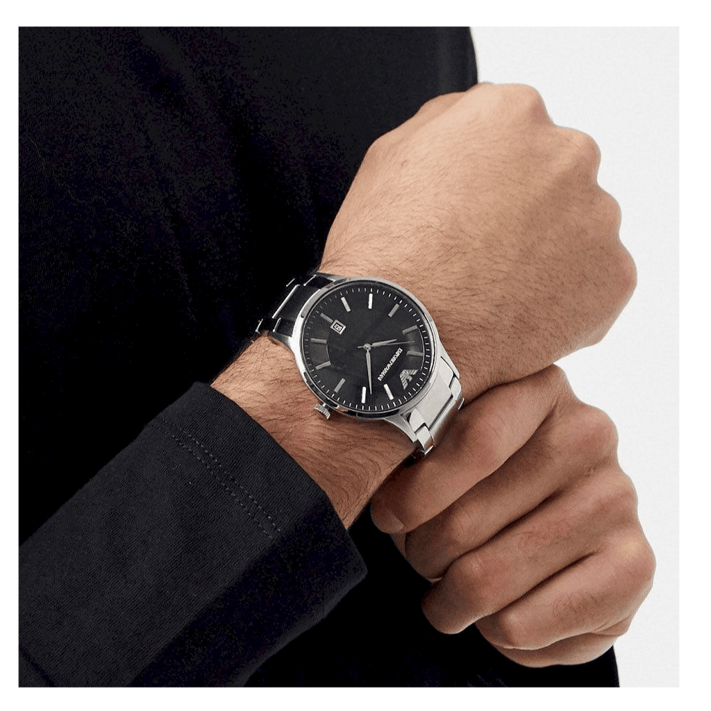 Emporio Armani Renato Quartz Black Dial Silver Steel Strap Watch For Men - AR11181